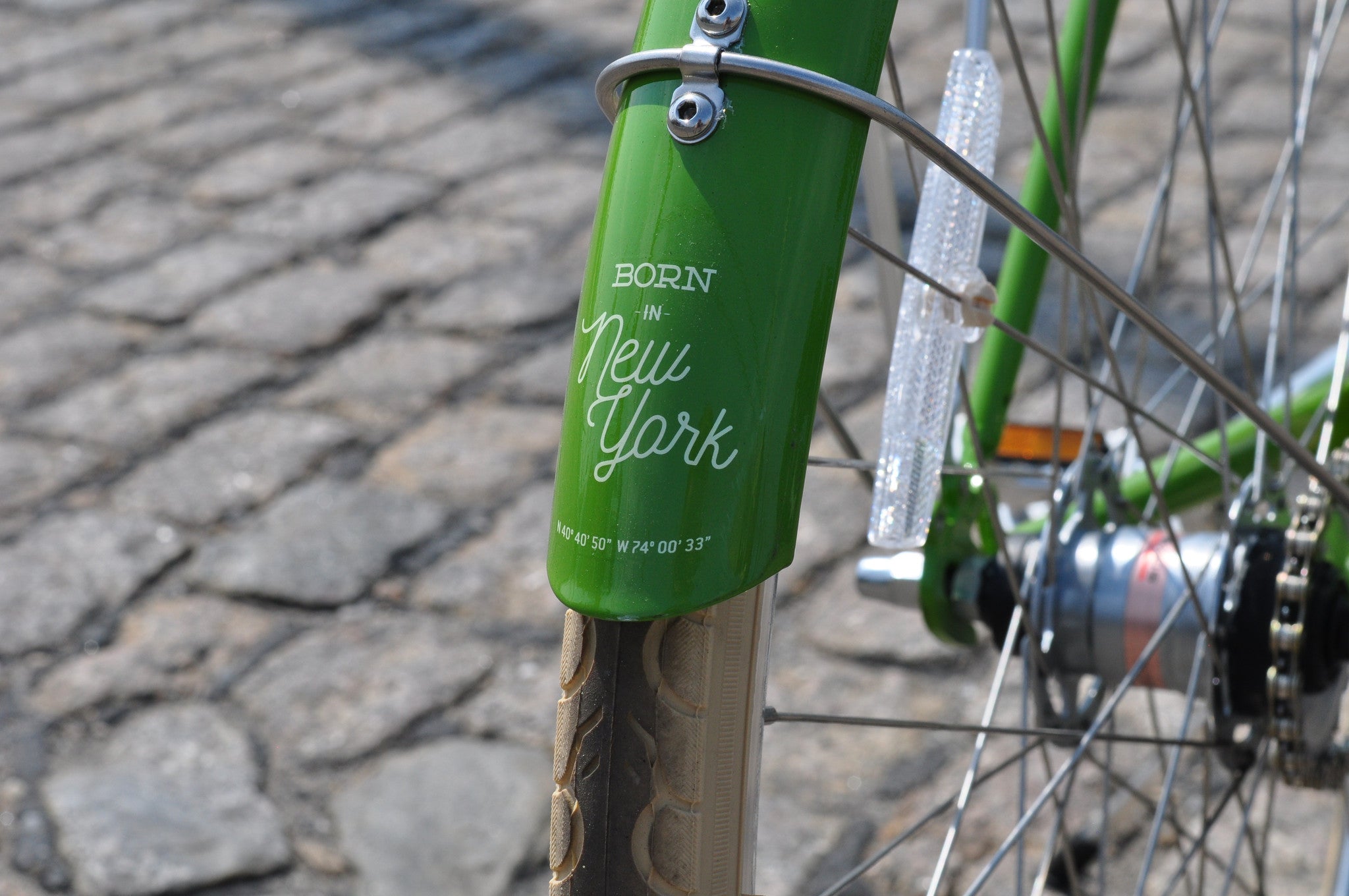 Sizing FAQs Turquoise Born in NYC Comes stock with rear rack, fenders, brakes, kickstand, bell, saddle and grip. Accessorize with front basket, lights,... View full product details