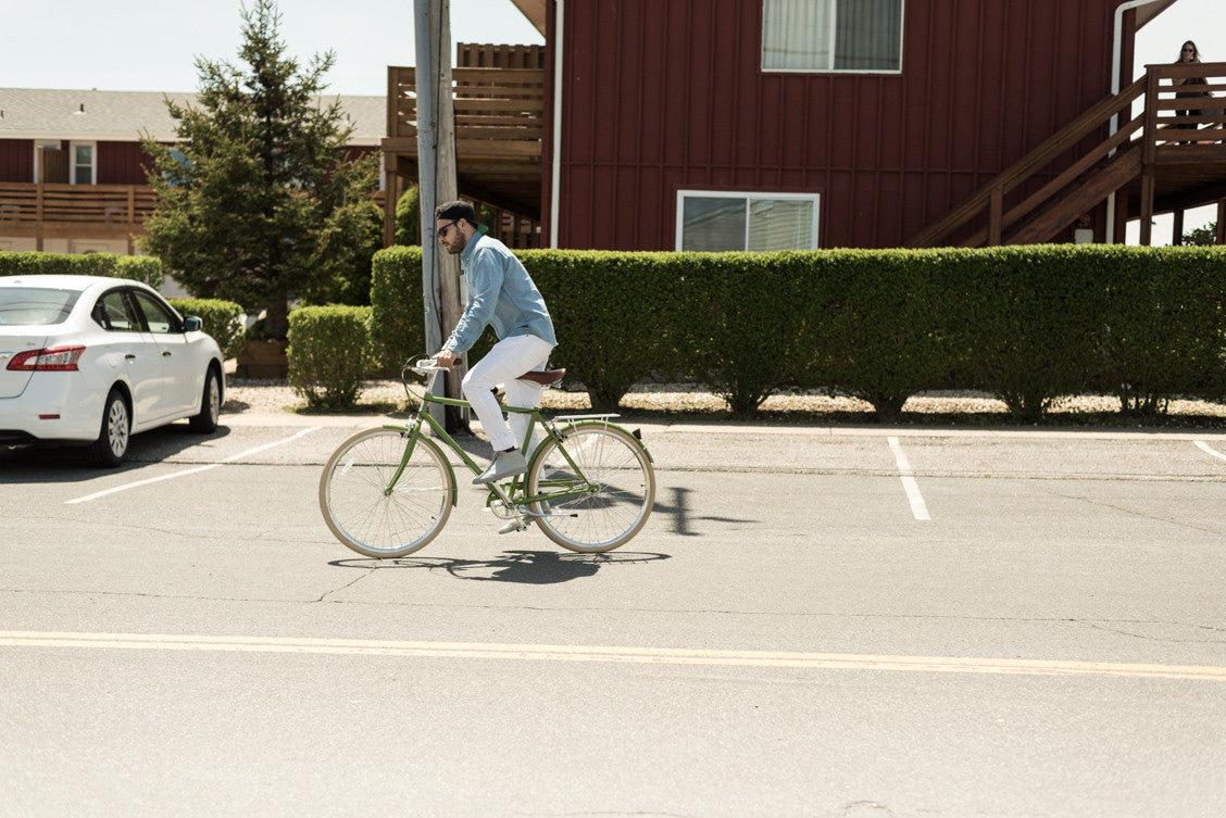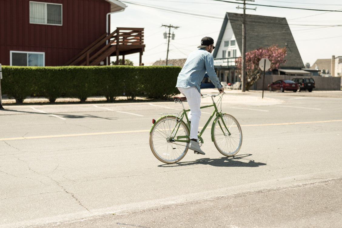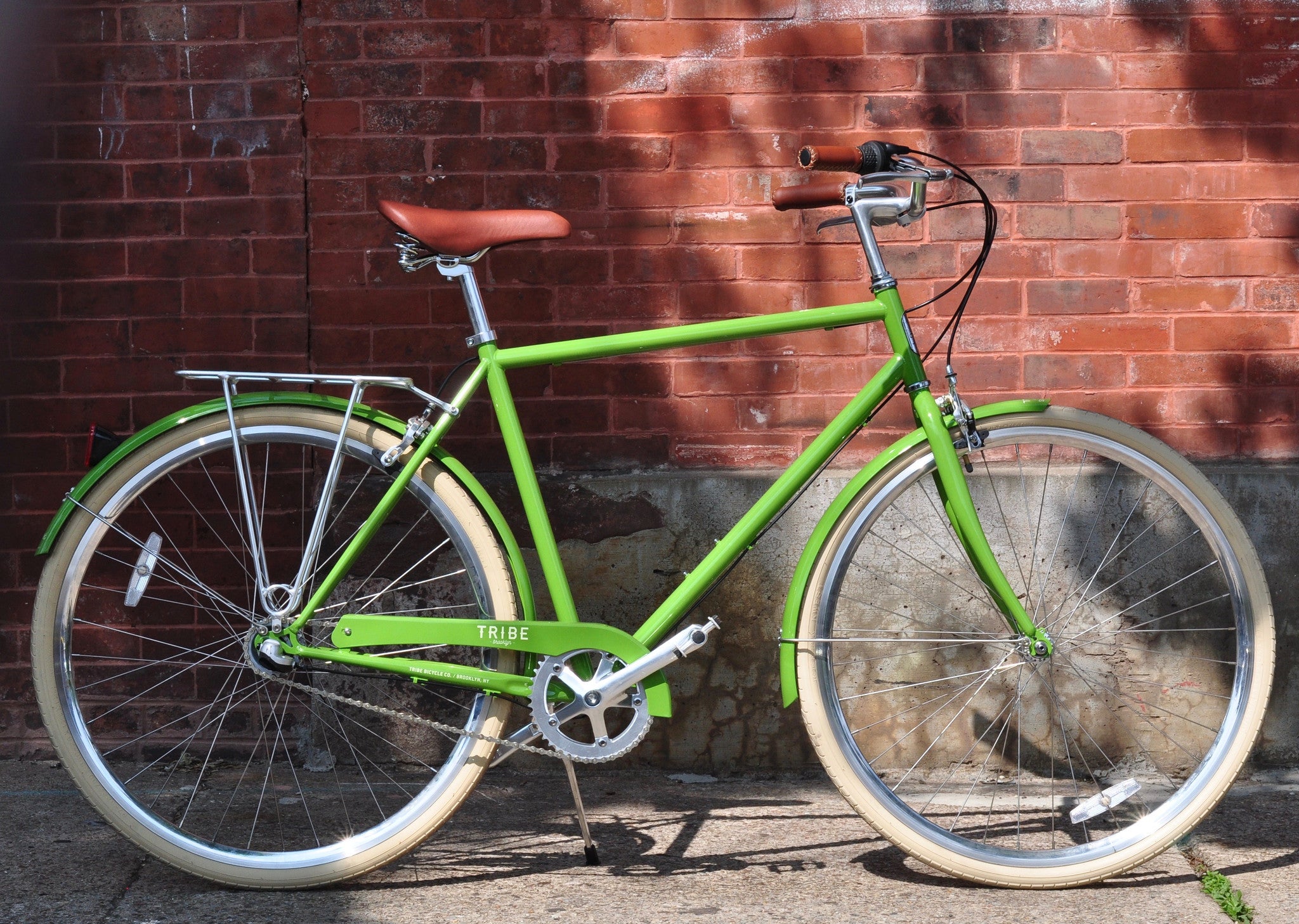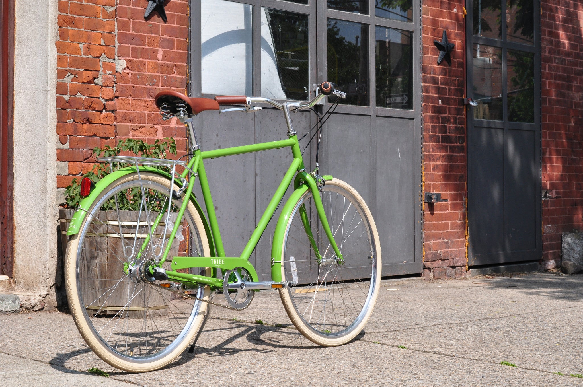Sizing FAQs Olive & Tan Born in NYC Comes stock with rear rack, fenders, brakes, kickstand, bell, saddle and grip. Accessorize with front... View full product details