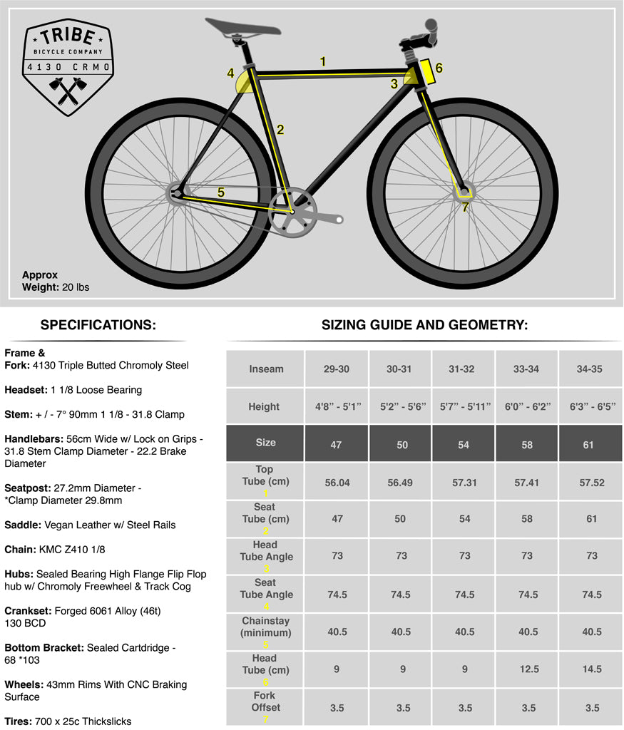 LIFETIME WARRANTYOur main focus is to build you a great quality bicycle that's as safe as it is enjoyable. Nothing was overlooked during the building of your bike. Every part used on a Tribe bike comes from a trusted supplier and we back this up with a lifetime warranty on our frames and forks, as well as a one year warranty on all consumable parts. To learn more about our warranty click here. Remember to activate your warranty you must have your bike built by a licensed mechanic.