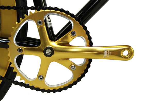Cranksets are one of the main components in the bicycle drivetrain system. They turn the energy your legs create into the motion that drives the bicycle forward (or also backwards in the case of fixed gear bikes). A chainring has a certain amount of teeth noted in the specs. For example, 44 or 46 or 48 t or teeth.