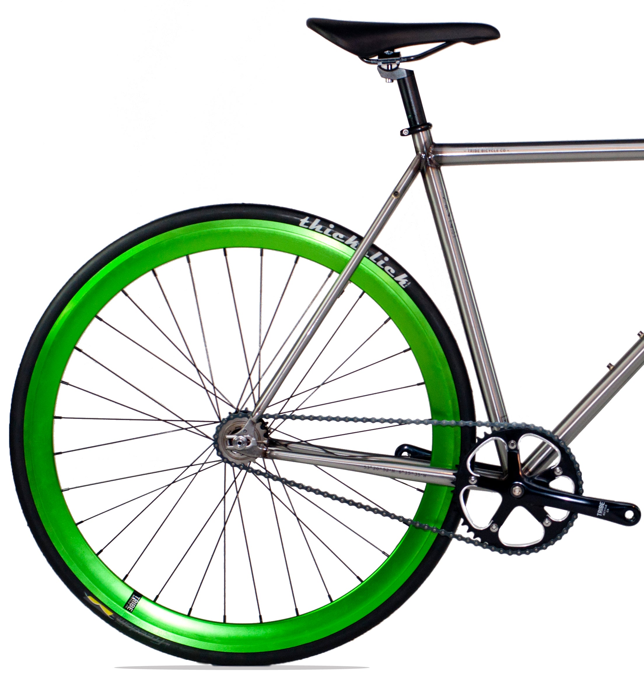 N 53° 20’ 52” W 6° 15’ 35” Dark, raw, and rustic like the coasts it calls home, the Celtic pays homage to the tribes who once roamed the Celtic nations. This fixed gear, single speed bike features a unique brushed chromoly steel frame with burnt welds, black components, and bright green anodized rims like that of the Irish shamrocks.